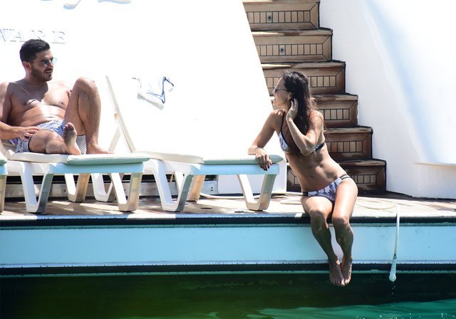 Sevgilisiyle yüzdükten sonra jet-ski’ye binen Şallı, kusursuz fiziğiyle göz doldurdu.