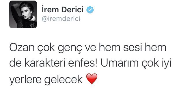 İkilinin gerçekleştirdiği düet, kısa sürede sosyal medyada çok sayıda dinleyiciye erişti. Büyük ilgi gören bestenin sahibi Ozan Pehlivan hakkında yorumda bulunan İrem Derici ‘’Ozan’ın çok iyi yerlere geleceğine inanıyorum, hem sesi hem de karakteri müthiş, kendisine desteğimi hiçbir zaman esirgemeyeceğim’’ dedi. Ünlü sanatçı ayrıca resmi Twitter sayfasından takipçilerine de Ozan Pehlivan hakkındaki düşüncelerinden bahsetti.
