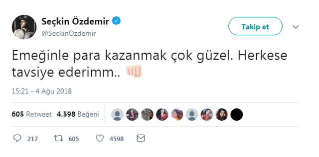 “Emeğinle para kazanmak çok güzel. Herkese tavsiye ederim."