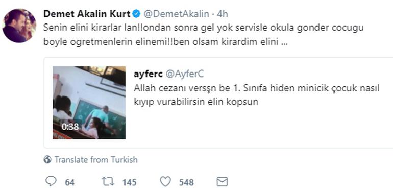 Akalın: 'Senin elini kırarlar lan! Ondan sonra gel yok servisle okula gönder çocuğu. Böyle öğretmenlerin eline mi! Ben olsam kırardım elini!' yazdı.