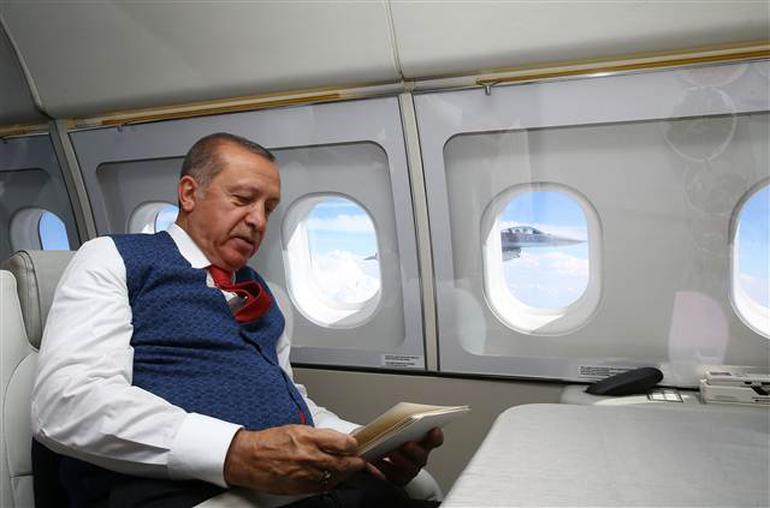 Erdoğan, Ankara'dan İstanbul'a giderken F-16 uçakları, Cumhurbaşkanı Erdoğan'ın uçağının kanat hizasına gelerek selamladı. Cumhurbaşkanı Erdoğan da onları selamladı.
