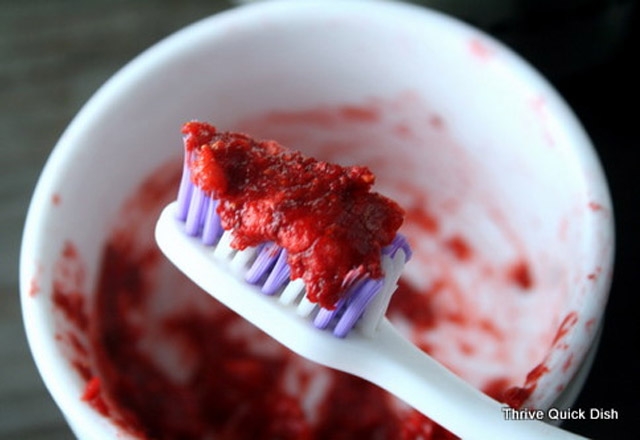 Çilek, malik asit içerir. Bu asit, kahve, şarap ve çay lekelerine karşı muhteşem bir etkiye sahiptir. 2 çileği ezin ve karbonat ile karıştırıp 5-7 dakika dişlerinizi fırçalayın. Her gün kullanmamanızı öneririz.