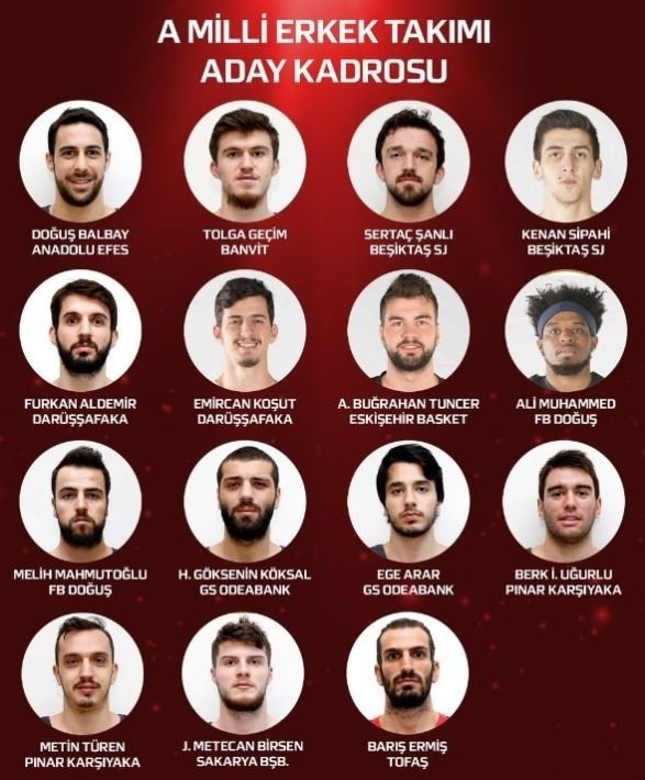 A Milli Basketbol Takımı aday kadrosunda yer alan oyuncular şöyle: