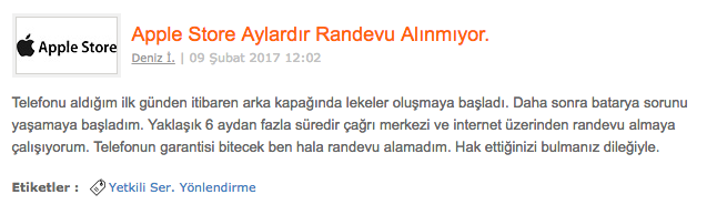 Özetle, eğer adınız X diyelim... ama iColud şifrenizi rumuzlu aldınız ve Y dediniz. Apple Store sizi kabul etmiyor. Siz sanki cihazın sahibi değilmişsiniz gibi kapı dışarı gönderiyor.... Vatandaşlar şikayet sitelerini Apple Store hakkındaki isyanları ile de böyle doldurdu: