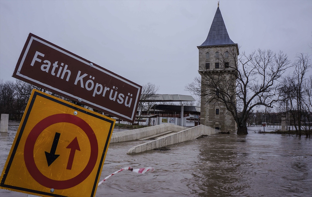 Tunca'nın debisinin yükselmesi nedeniyle Fatih ve Kanuni köprüleri trafiğe kapalı tutulmaya devam ediliyor.