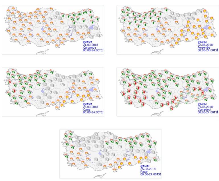 Yapılan son değerlendirmelere göre; Doğu Karadeniz, Doğu Anadolu’nun kuzeyi, Adana’nın kuzeyi ile akşam saatlerinden sonra Trakya, gece saatlerinden sonra İstanbul, Çanakkale ve Kocaeli çevrelerinin yağmur ve sağanak yağışlı geçeceği tahmin ediliyor. Meteoroloji Genel Müdürlüğünden alınan tahminlere göre, hava sıcaklığının batı kesimlerde 1 ila 3 derece artacağı, İç ve doğu kesimlerde 2 ila 5 derece azalacağı, yurt genelinde mevsim normallerinin üzerinde seyredeceği tahmin ediliyor. Rüzgarın; genellikle batı ve güneybatı, gece Marmara’da kuzeybatı yönlerden hafif, ara sıra orta kuvvette, Marmara, Kuzey Ege kıyıları ile gece saatlerinden sonra Güney Ege kıyılarında kuvvetli(30-60 km/sa) olarak eseceği tahmin ediliyor. Bazı illerde beklenen hava durumuyla günün en yüksek sıcaklıkları ise şöyle:
